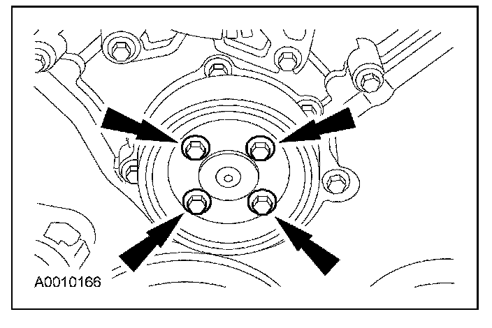 73. Position the coolant pump pulley on the coolant pump and install the 4 bolts.