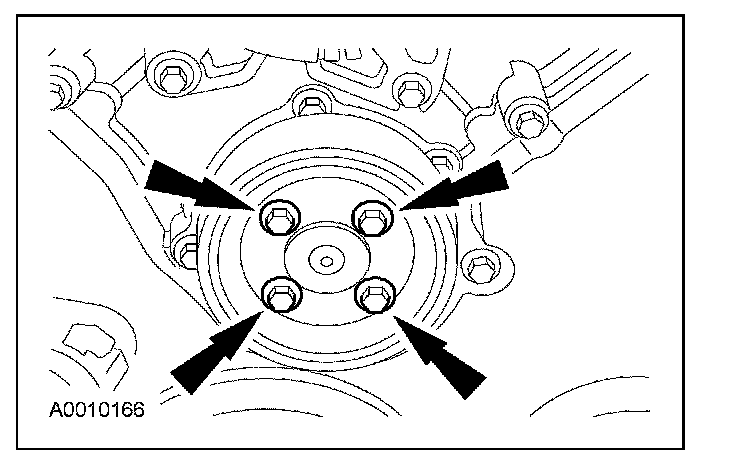 44. Remove the 4 bolts and the coolant pump pulley.
