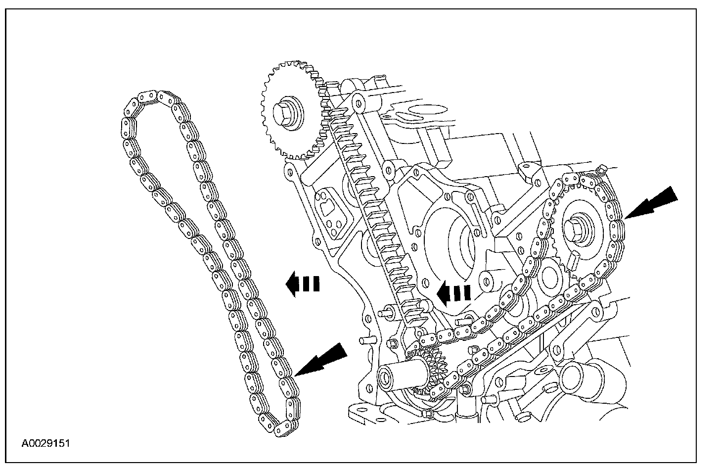 - Remove the RH timing chain from the crankshaft sprocket.
