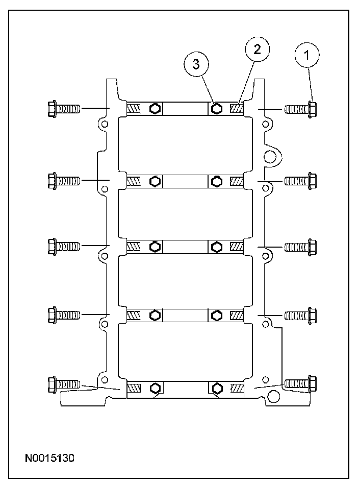 1. Remove and discard the 10 cross-mounted main cap bolts.