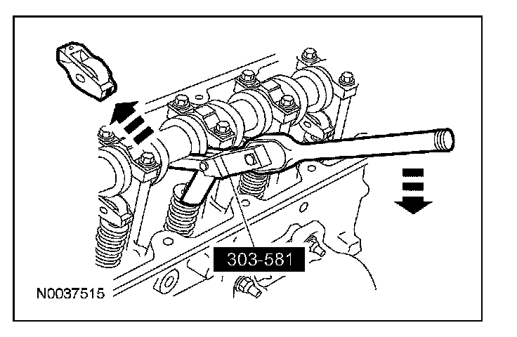 Use the special tool to compress the valve spring and remove the camshaft roller followers.
