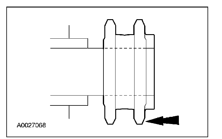 5. CAUTION: If one or both tensioner mounting bolts are loosened or removed, the tensioner-sealing bead must be inspected for seal integrity. Any cracks, tears, cuts or separation from the tensioner body or permanent compression of the seal bead will require replacement of the tensioner or damage to the engine may occur.
