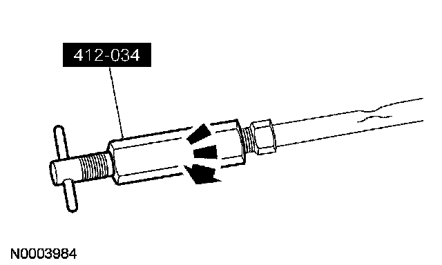 4. If the evaporator core orifice is intact, engage the special tool. Hold the T-handle stationary while rotating the tool body to remove the evaporator core orifice.