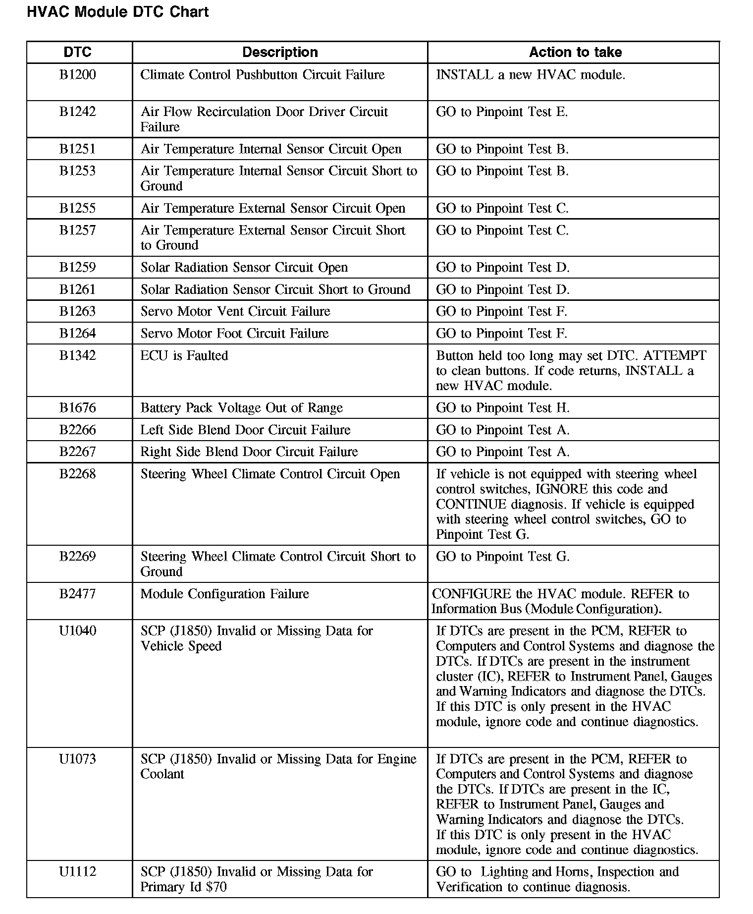 HVAC Module DTC Chart