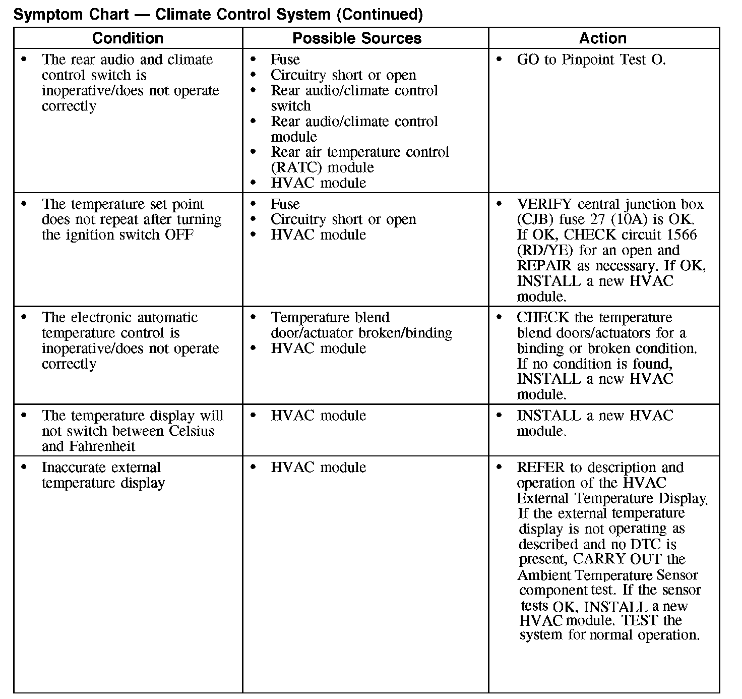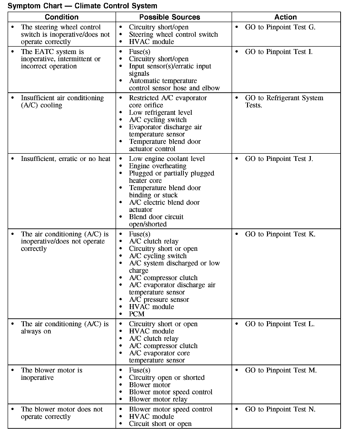 Symptom Chart - Climate Control System