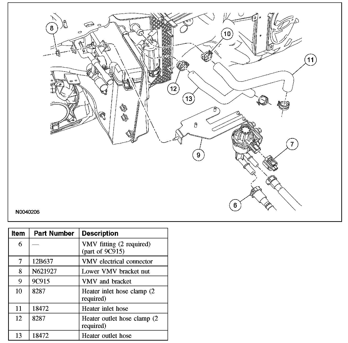 11. Release the 2 heater inlet hose clamps and remove the heater inlet hose.