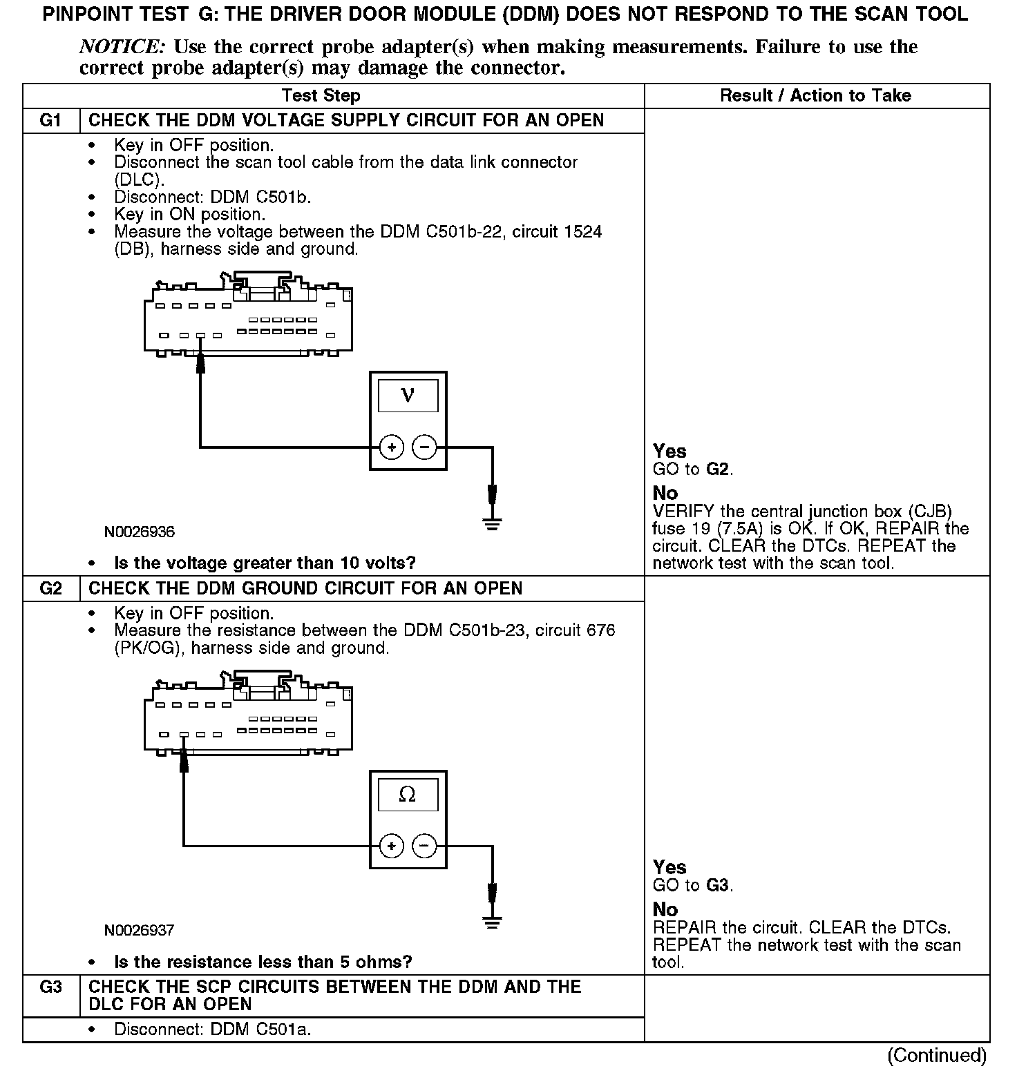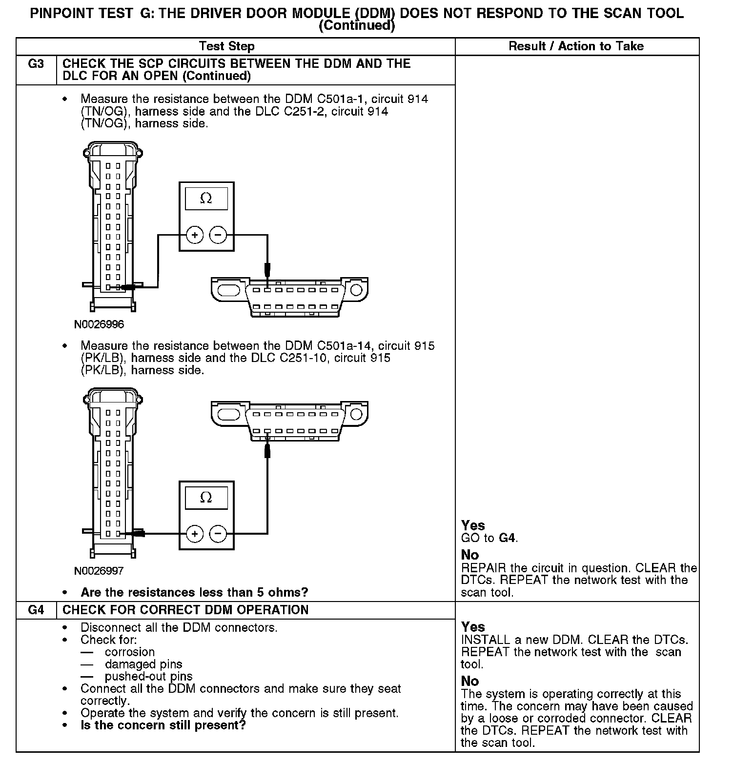 PINPOINT TEST G: THE DRIVER DOOR MODULE (DDM) DOES NOT RESPOND TO THE SCAN TOOL