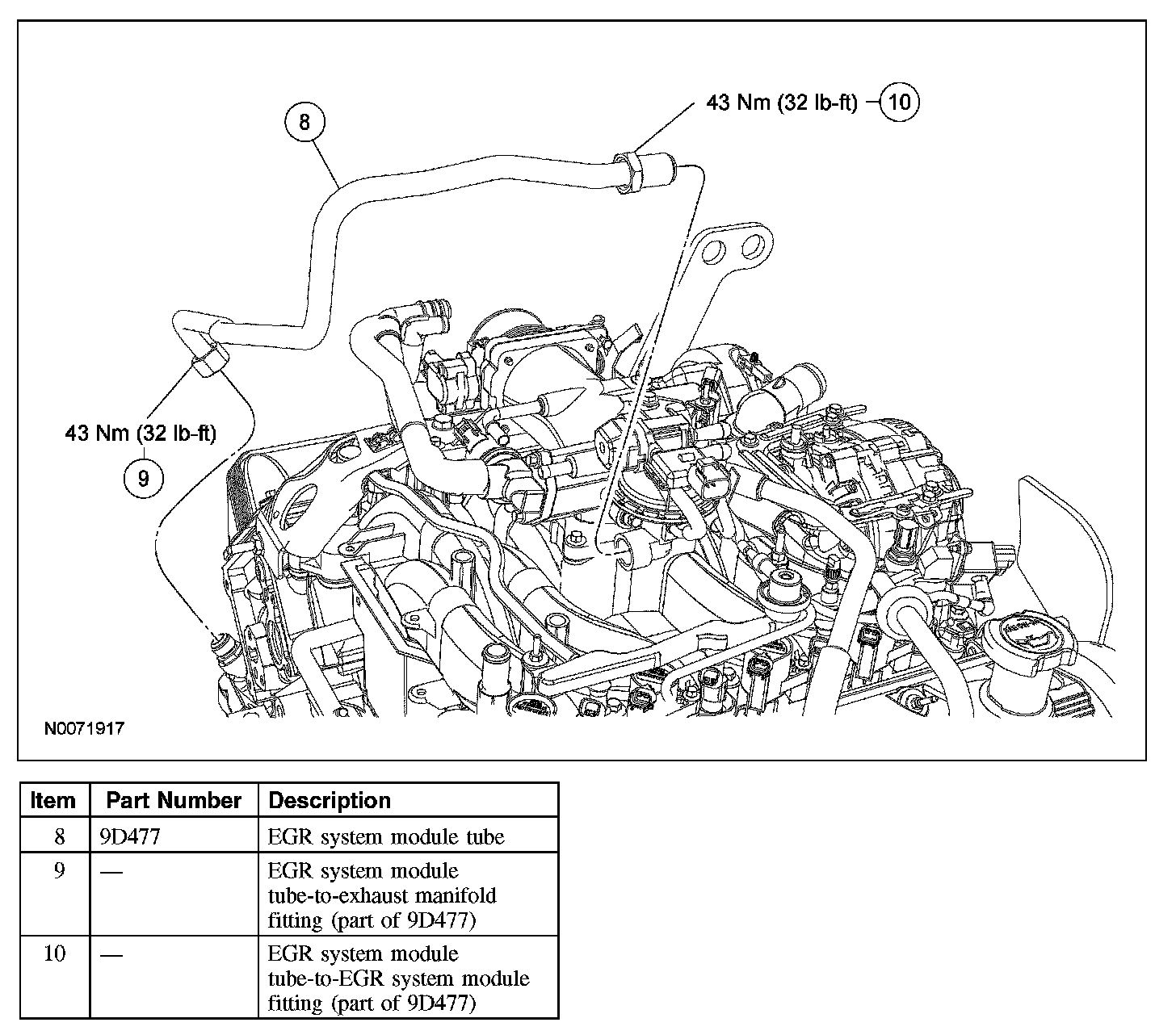 - To install, tighten to 43 Nm (32 lb-ft).