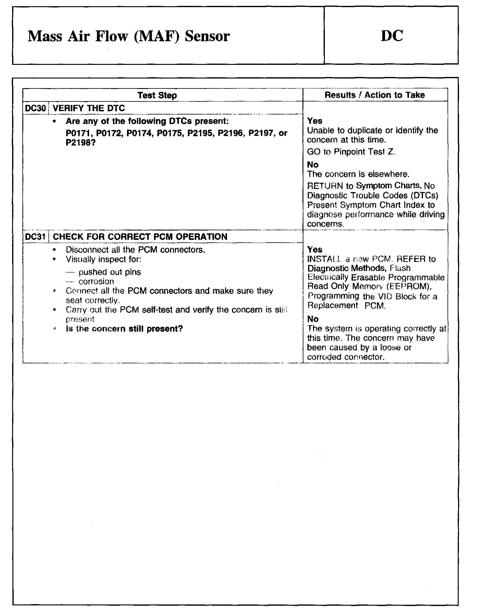 Tests DC: Mass Air Flow (MAF) Sensor
