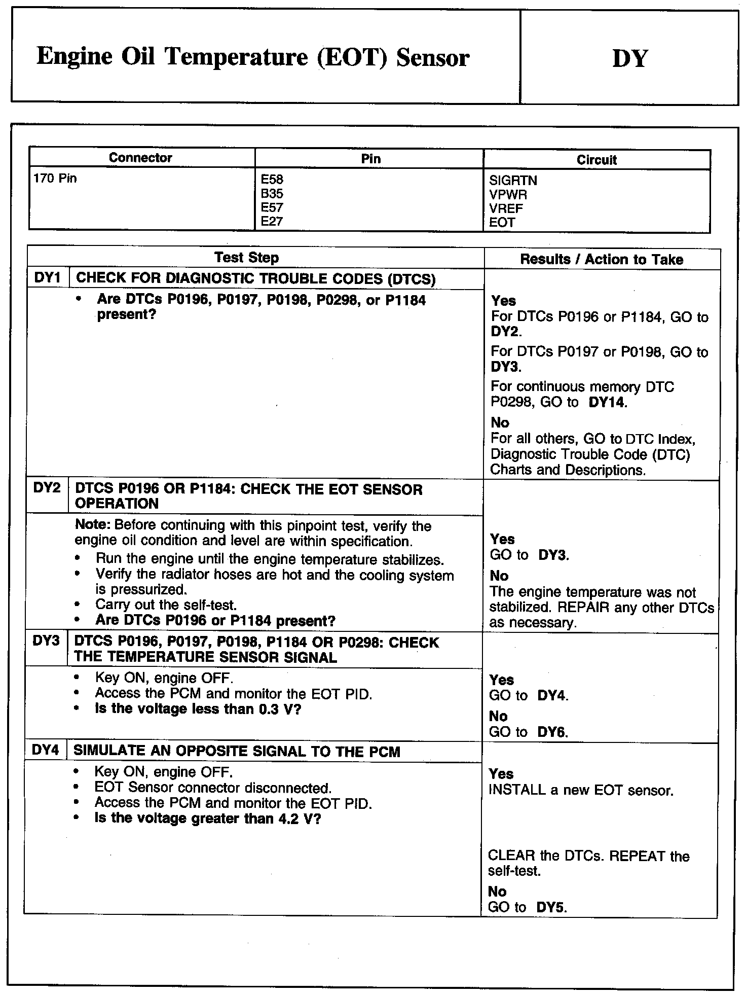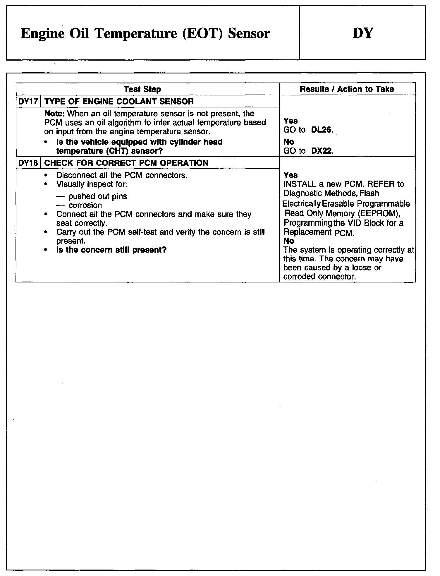 Tests DY: Engine Oil Temperature (EOT) Sensor