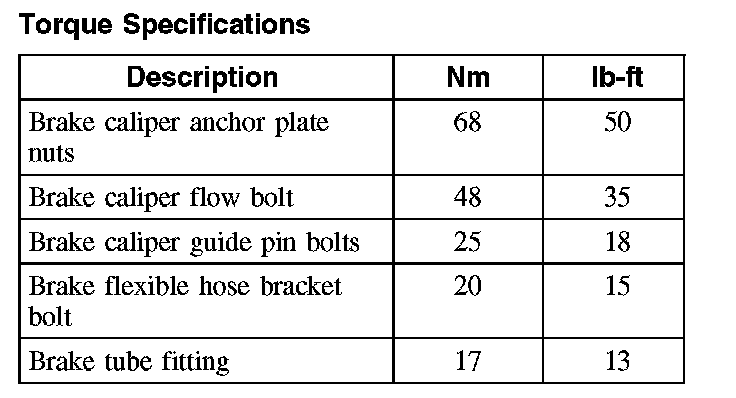 Torque Specifications, Rear