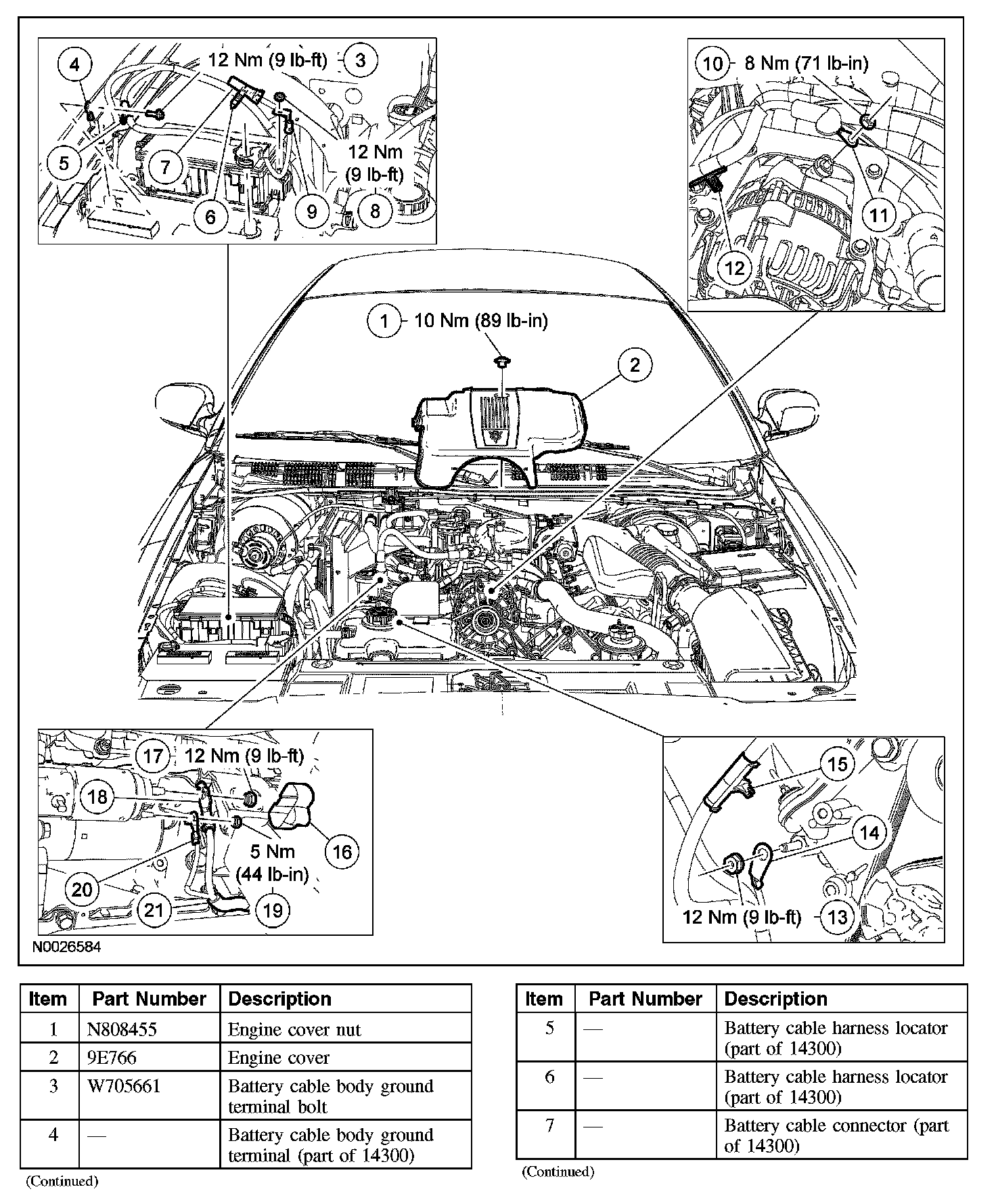 9. Remove the nut and position the battery cable engine ground terminal aside.