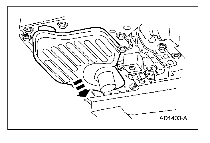 7. Pull down evenly and remove the transmission fluid filter and seal.
