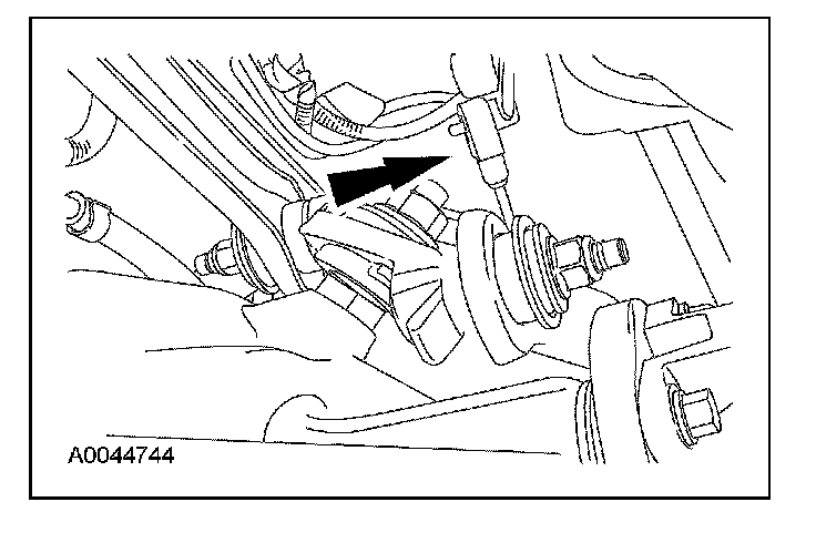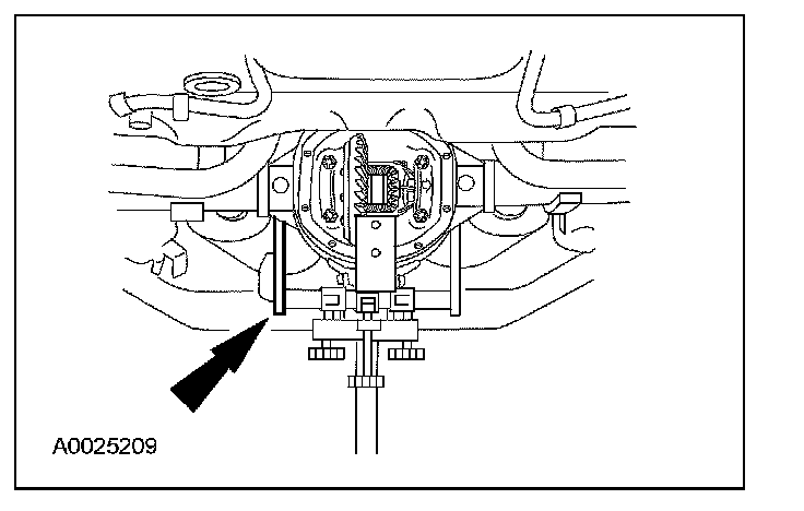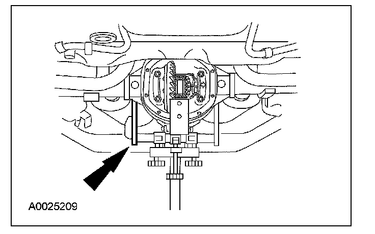 Raise the rear axle into position, using a suitable transmission jack.