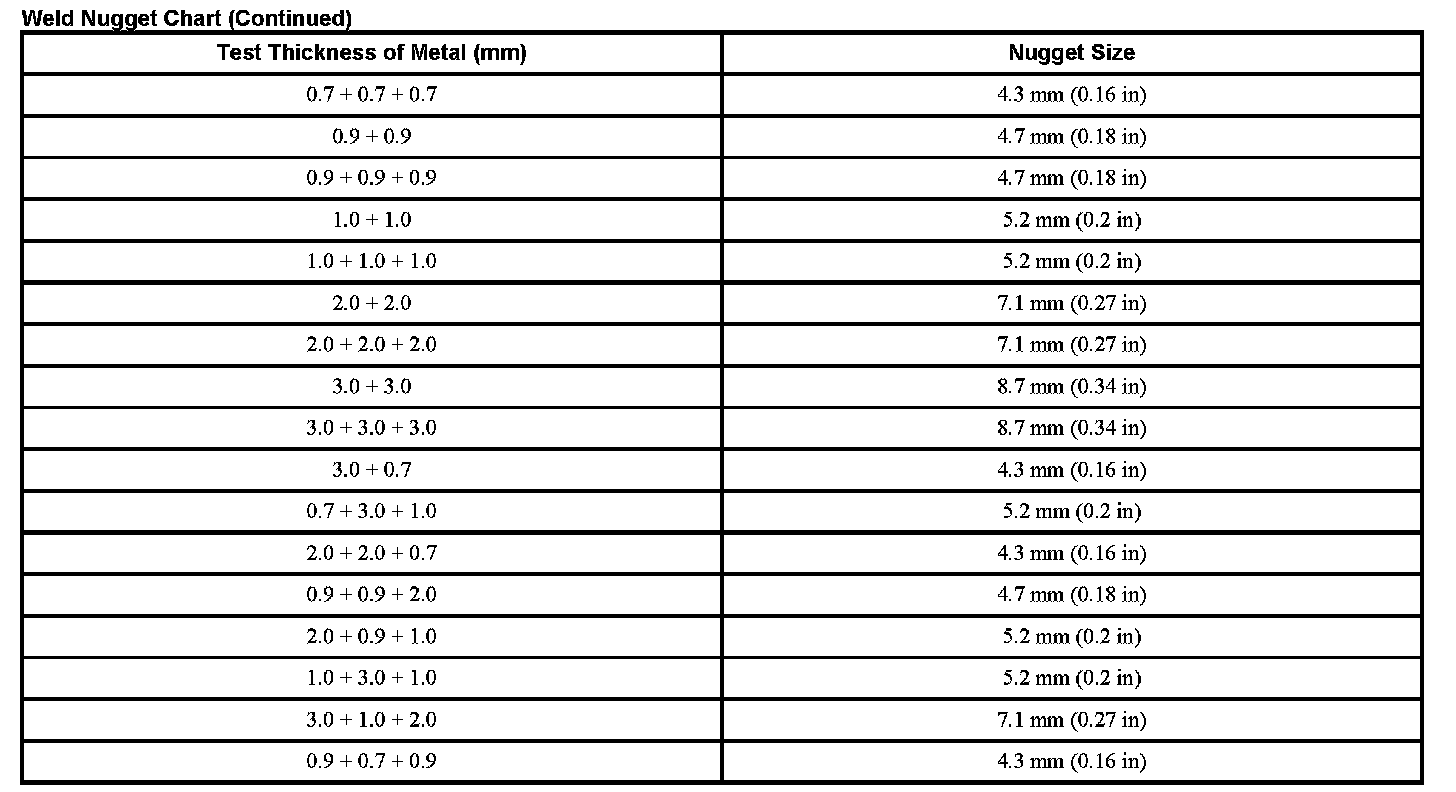 Weld Nugget Chart (Part 2):