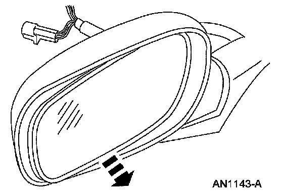 WARNING: Place a shop towel between the hands and the exterior mirror glass for protection in case of glass breakage during mirror service. Failure to follow this instruction may result in serious personal injury.