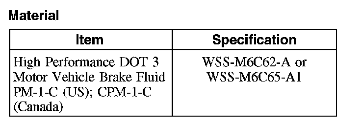 CAUTION: Brake fluid is harmful to painted and plastic surfaces. If brake fluid is spilled onto a painted or plastic surface, immediately wash it with water.