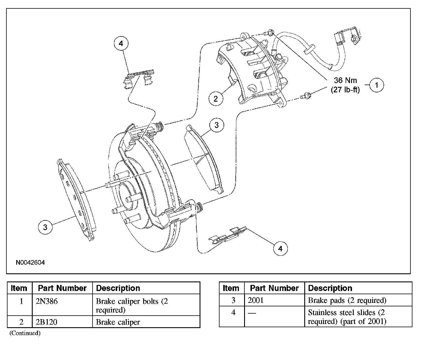 CAUTION: Do not allow the brake caliper to hang from the brake hose or damage to the hose may occur.