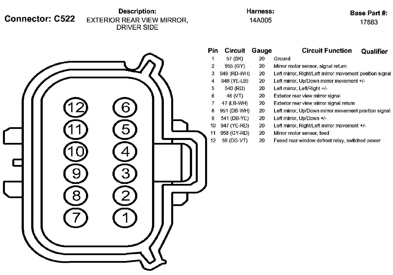 Exterior Rear View Mirror, Driver Side