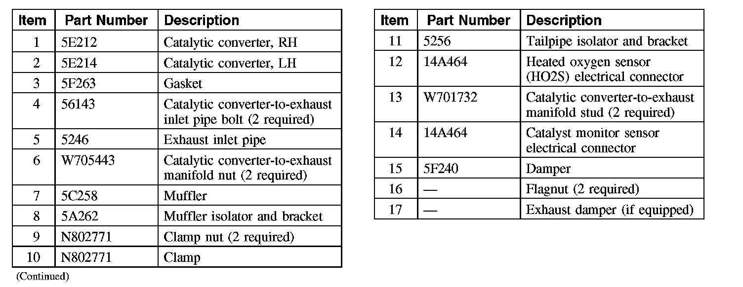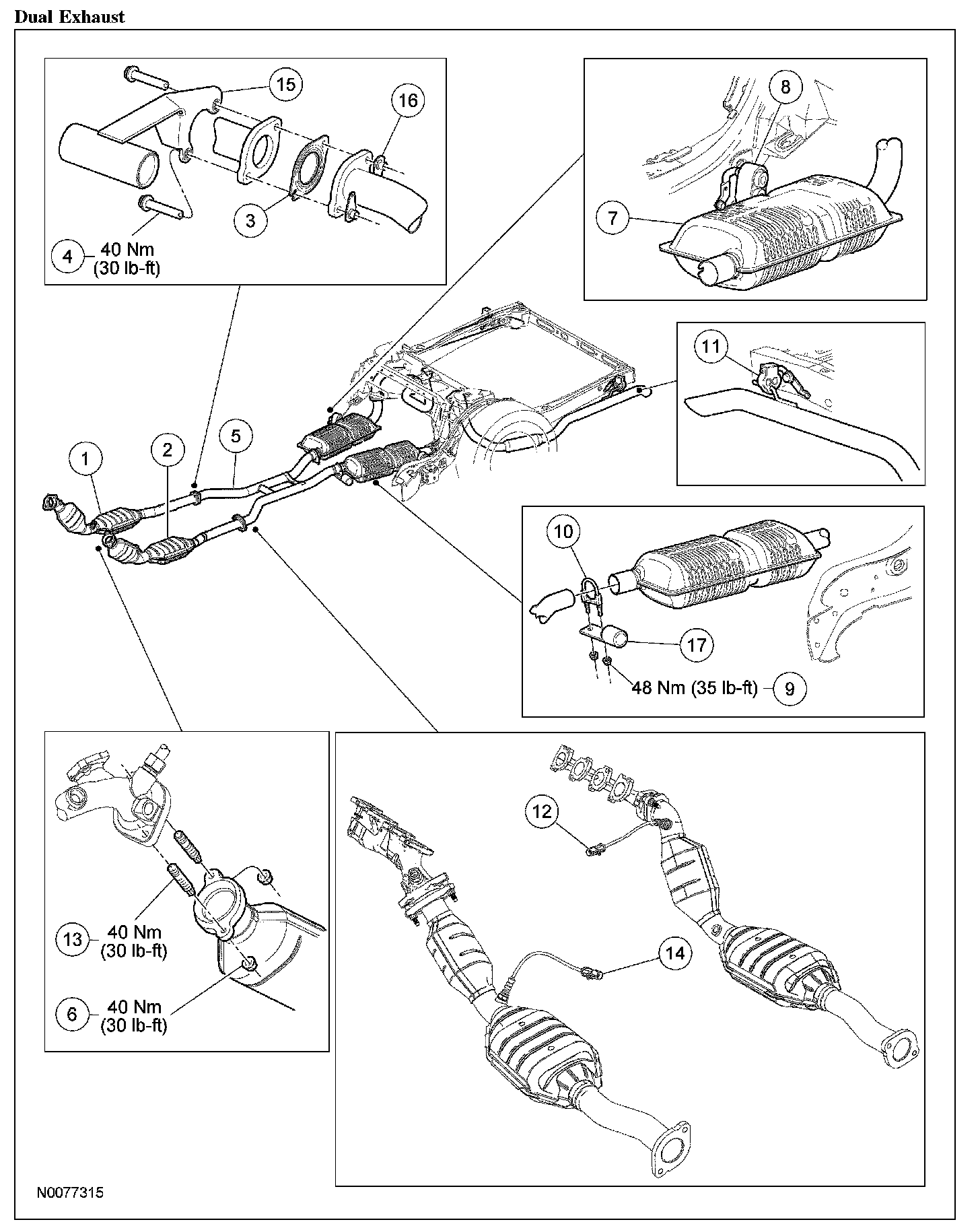 Exhaust System - Exploded View, Dual Exhaust (Part 1):