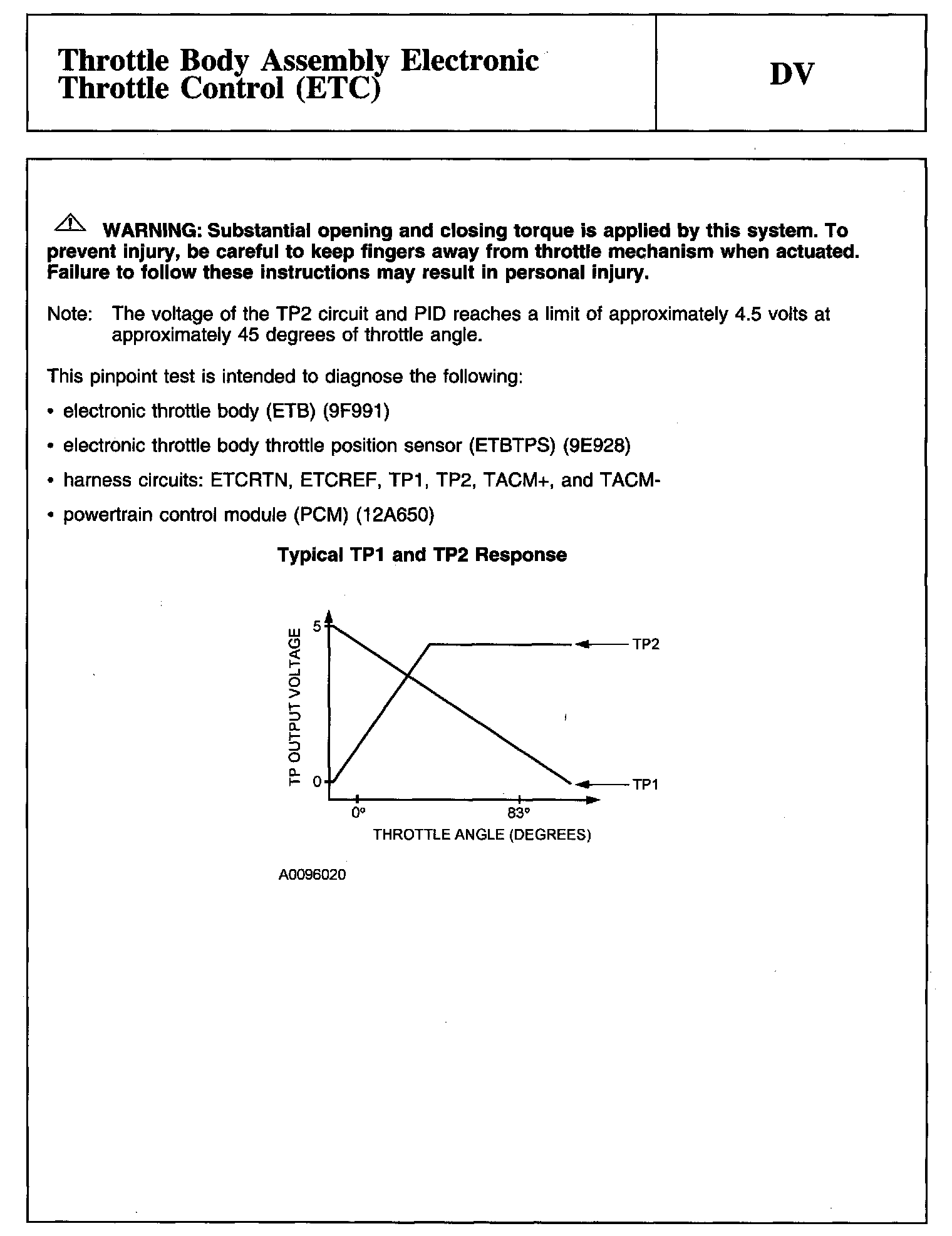 PINPOINT TEST DV: THROTTLE BODY ASSEMBLY ELECTRONIC THROTTLE CONTROL (ETC)Warning And Graph: