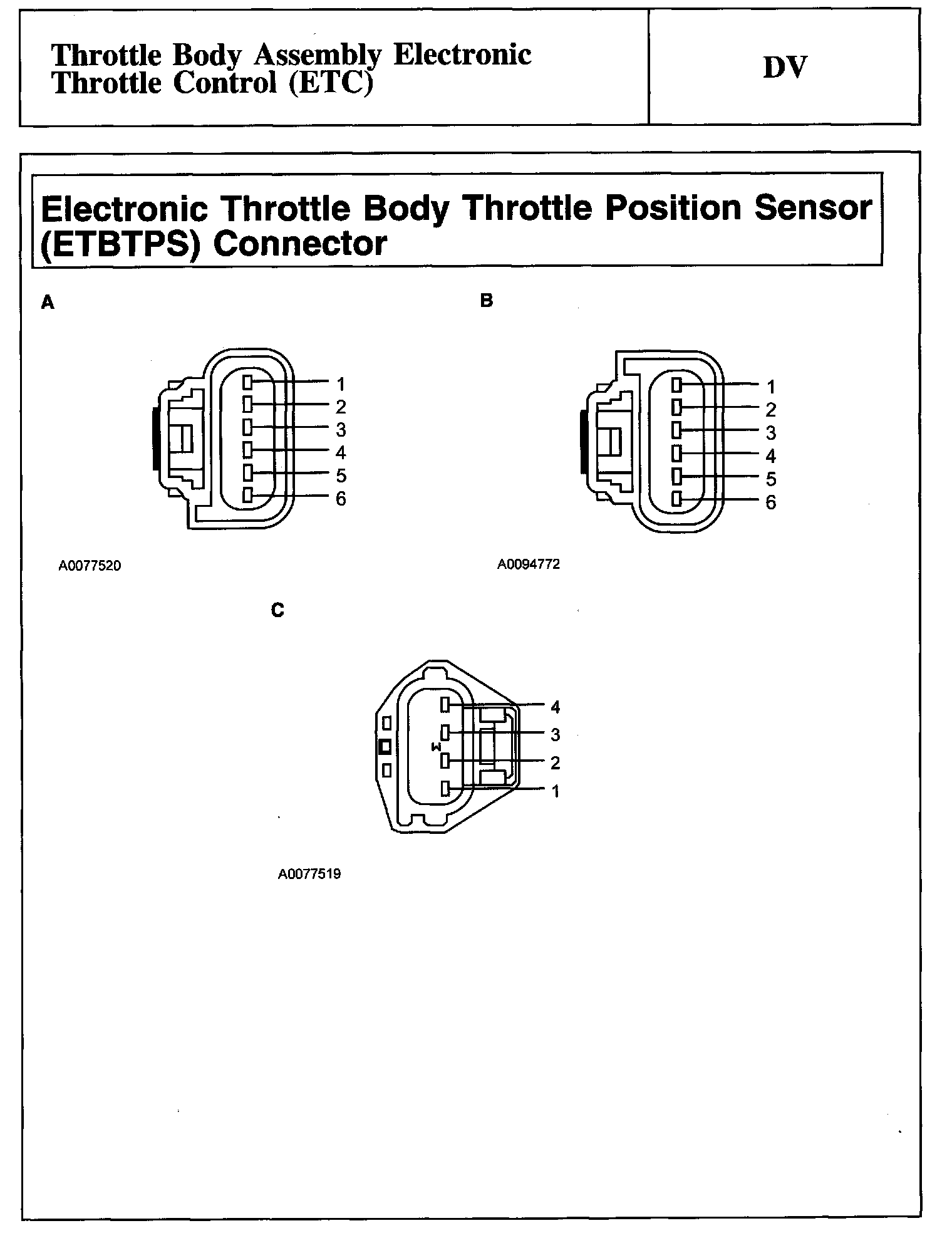 Electronic Throttle Body Throttle Position Sensor (ETBTPS) Connector: