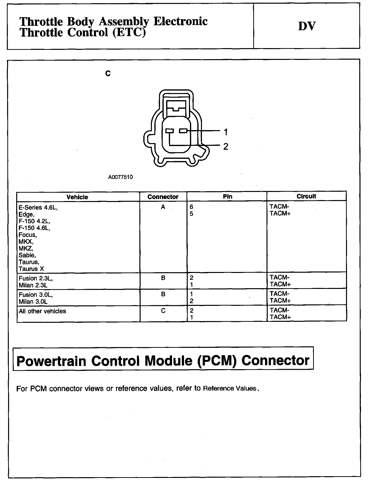 Electronic Throttle Body Throttle Actuator Control Motor (ETBTACM) Connector And Powertrain Control Module (PCM) Connector: