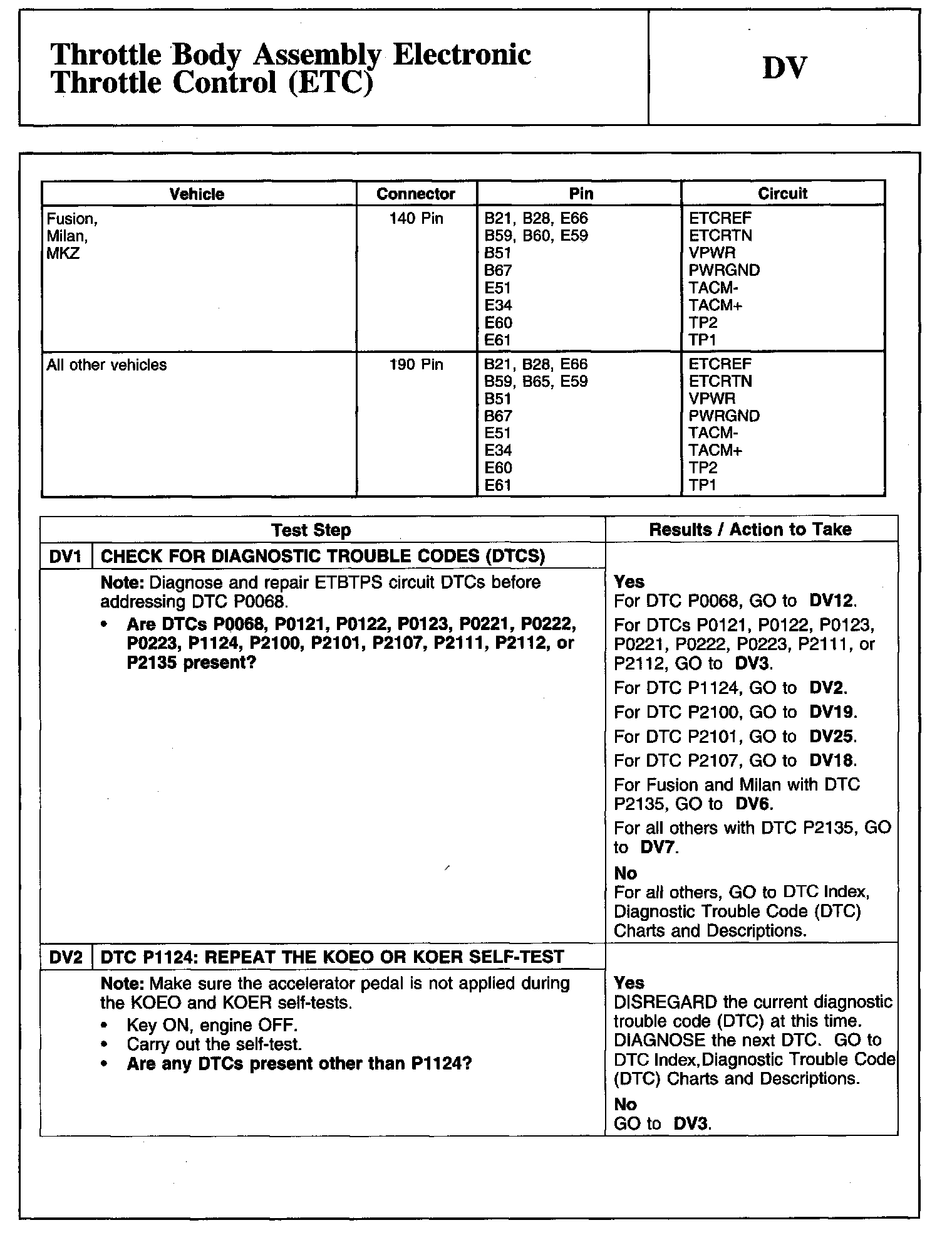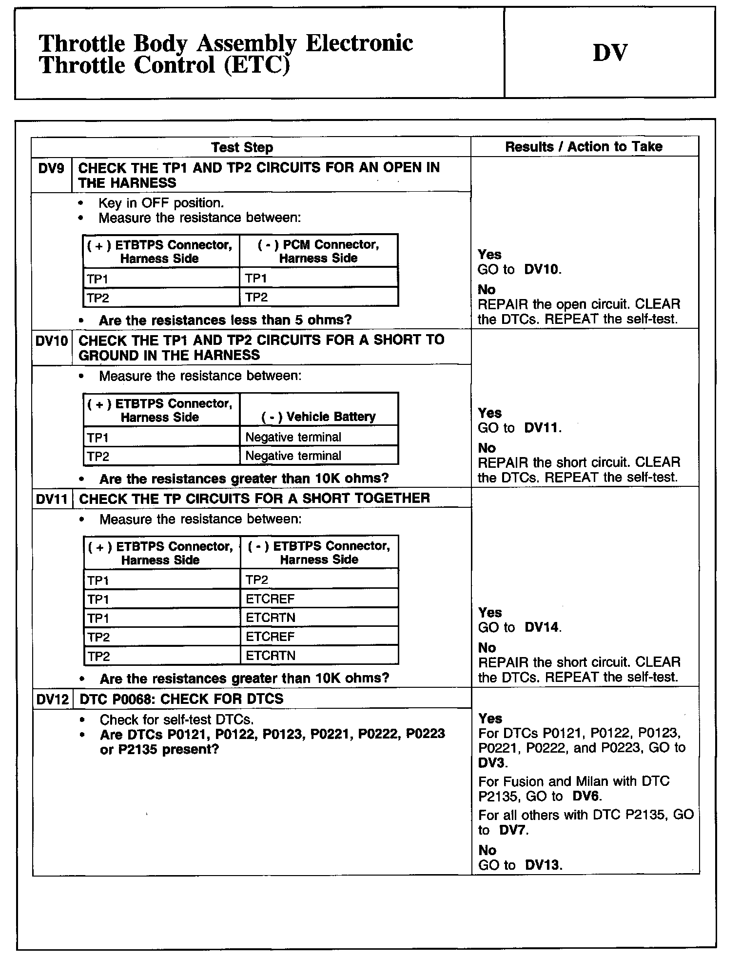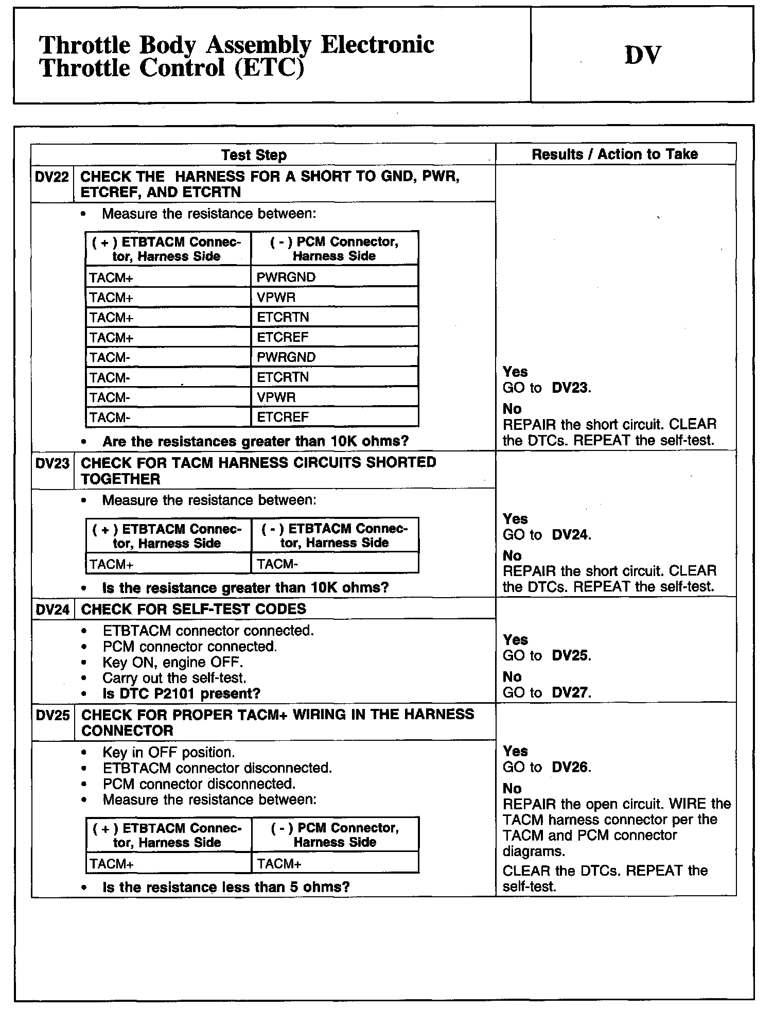Tests DV: Throttle Body Assembly Electronic Throttle Control (ETC)