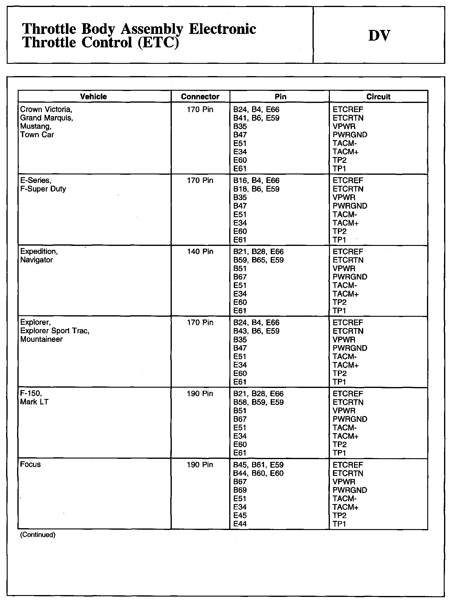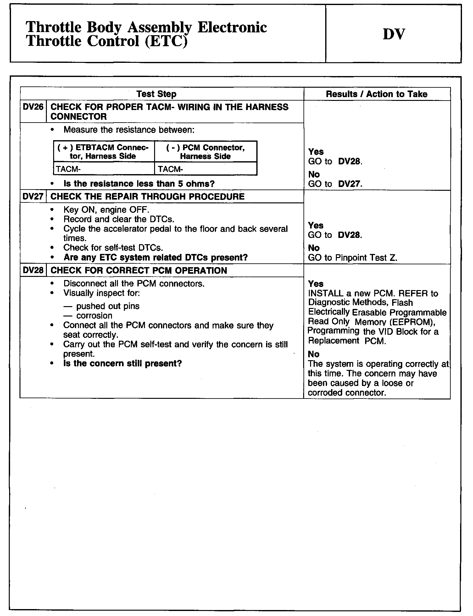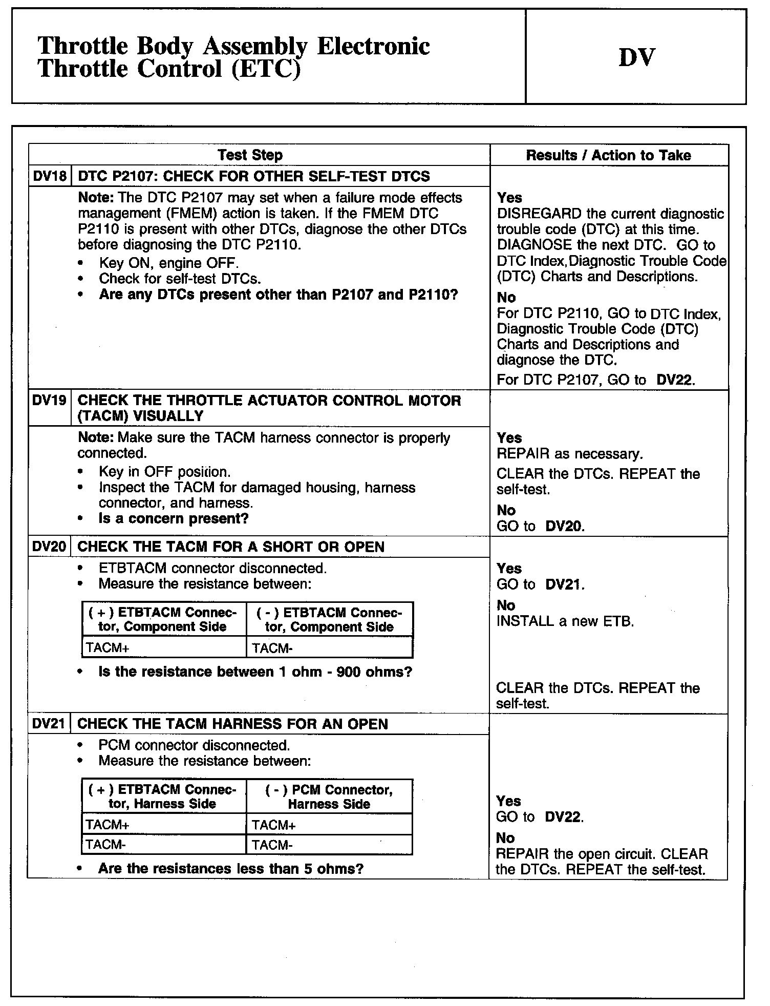 Tests DV: Throttle Body Assembly Electronic Throttle Control (ETC)
