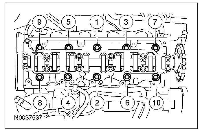 Camshaft bearing cap bolts 10 Nm (89 lb-in).