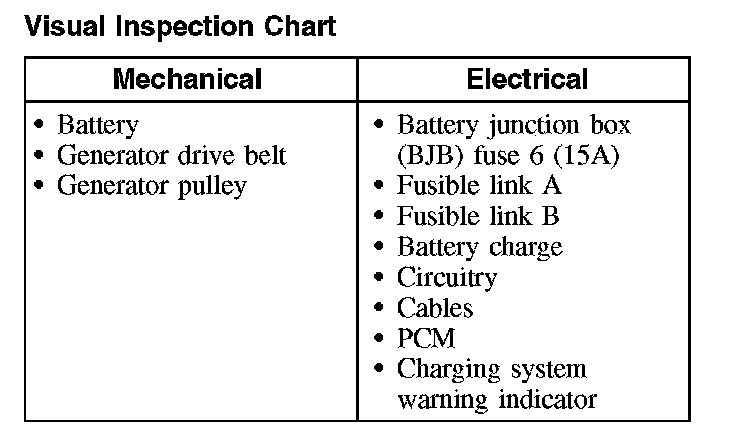 - With the key in the OFF position, the charging system warning indicator should be off.