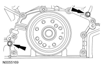 - Alternately tighten the 2 bolts one turn at a time until the crankshaft rear seal retainer-to-cylinder block seal is released.