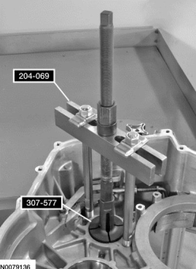 73. Install the Transfer Gear Bearing Race Remover 307-577 on the bearing cup.