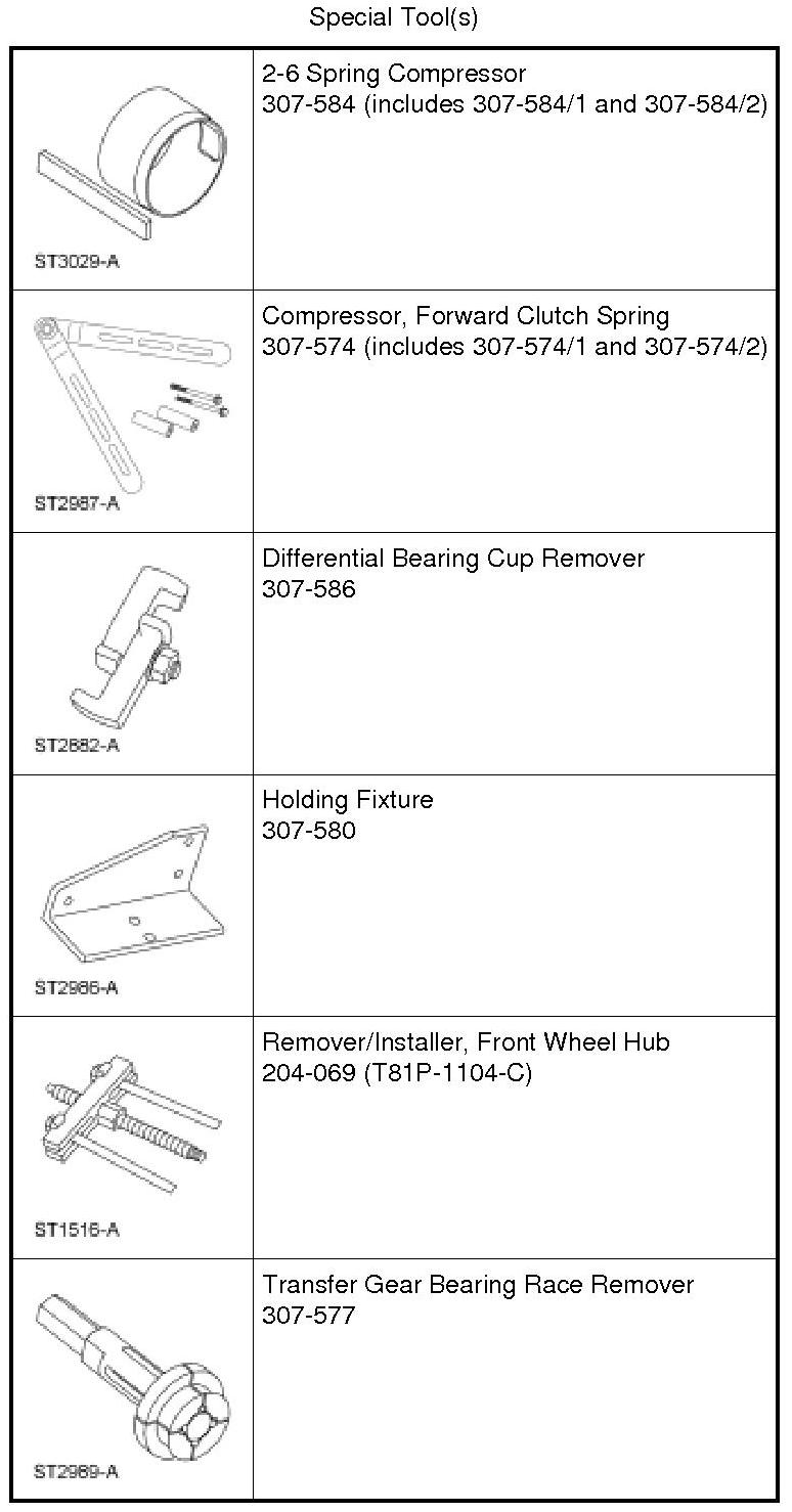 41. Remove Forward Clutch Spring Compressor 307-574 (307-574/1 and 307-574/2) and 2-6 Spring Compressor 307-584 (307-584/1 and 307-584/2).