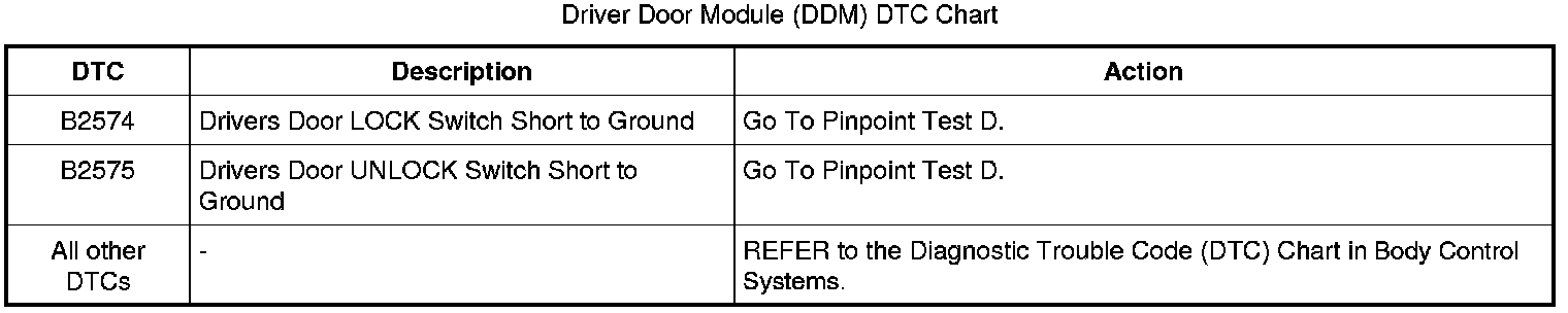 Driver Door Module (DDM) DTC Chart