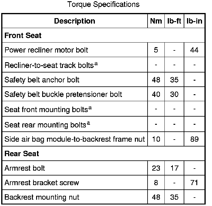 Seats: Specifications
