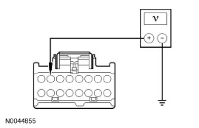 - Measure the voltage between DCSM C3265c-7, circuit RHS08 (VT/WH), harness side and ground.