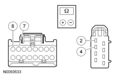 - NOTE: The ohmmeter must be connected with the positive lead to pin 2 and the negative lead to pin 4 when measuring. Ohmmeter leads incorrectly connected will result in false readings and lead to incorrect identification of components that are not faulty.