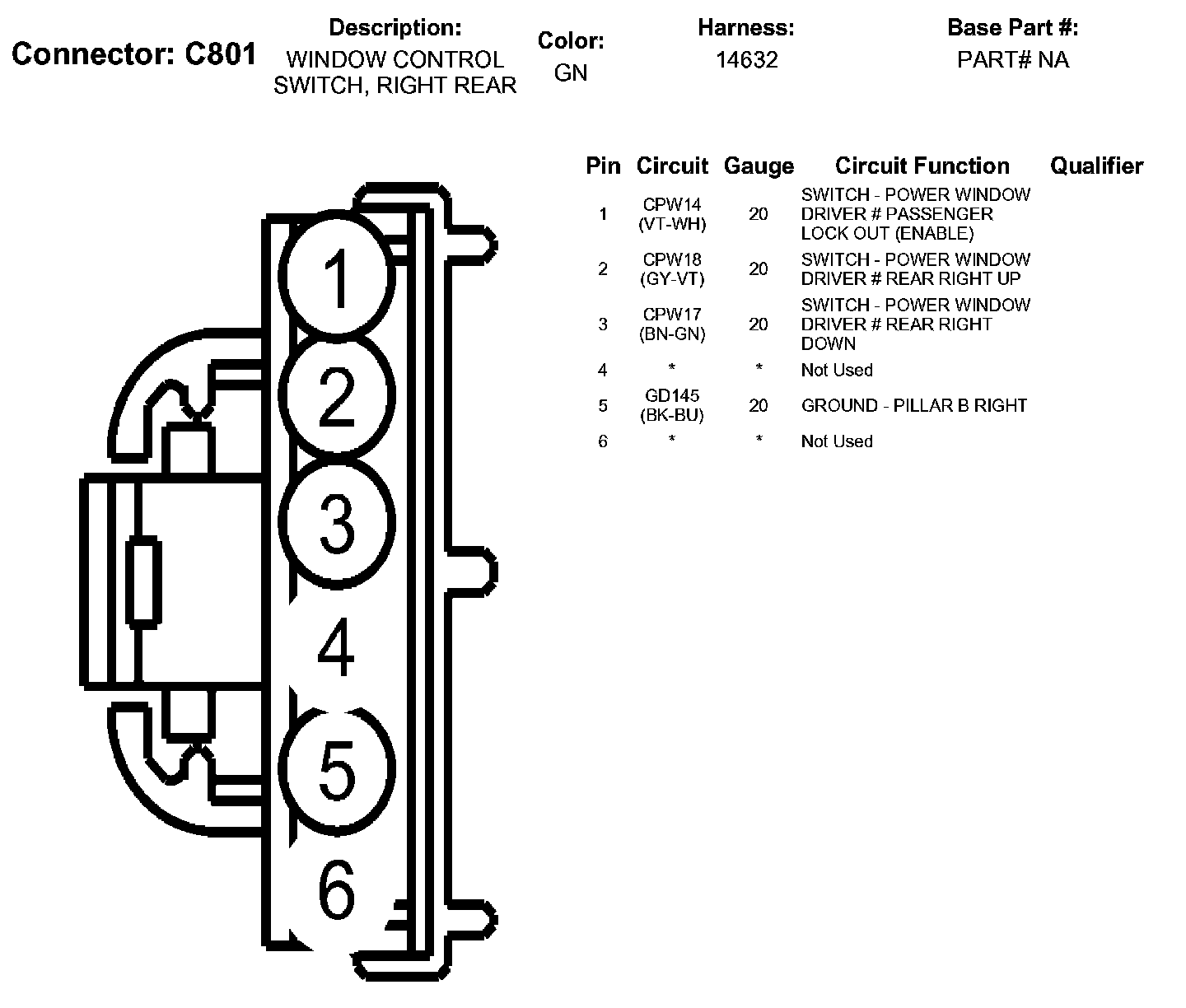 Window Control Switch, Right Rear