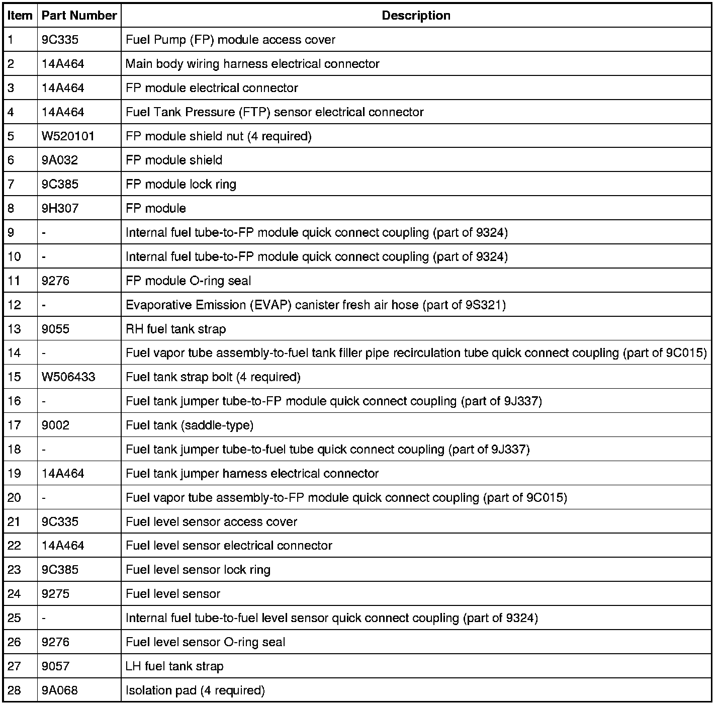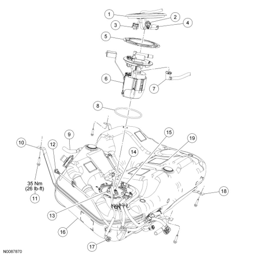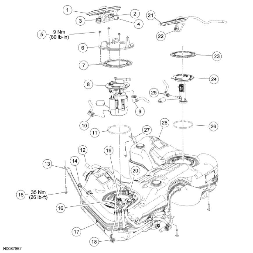 Fuel Tank and Filler Pipe - Exploded View