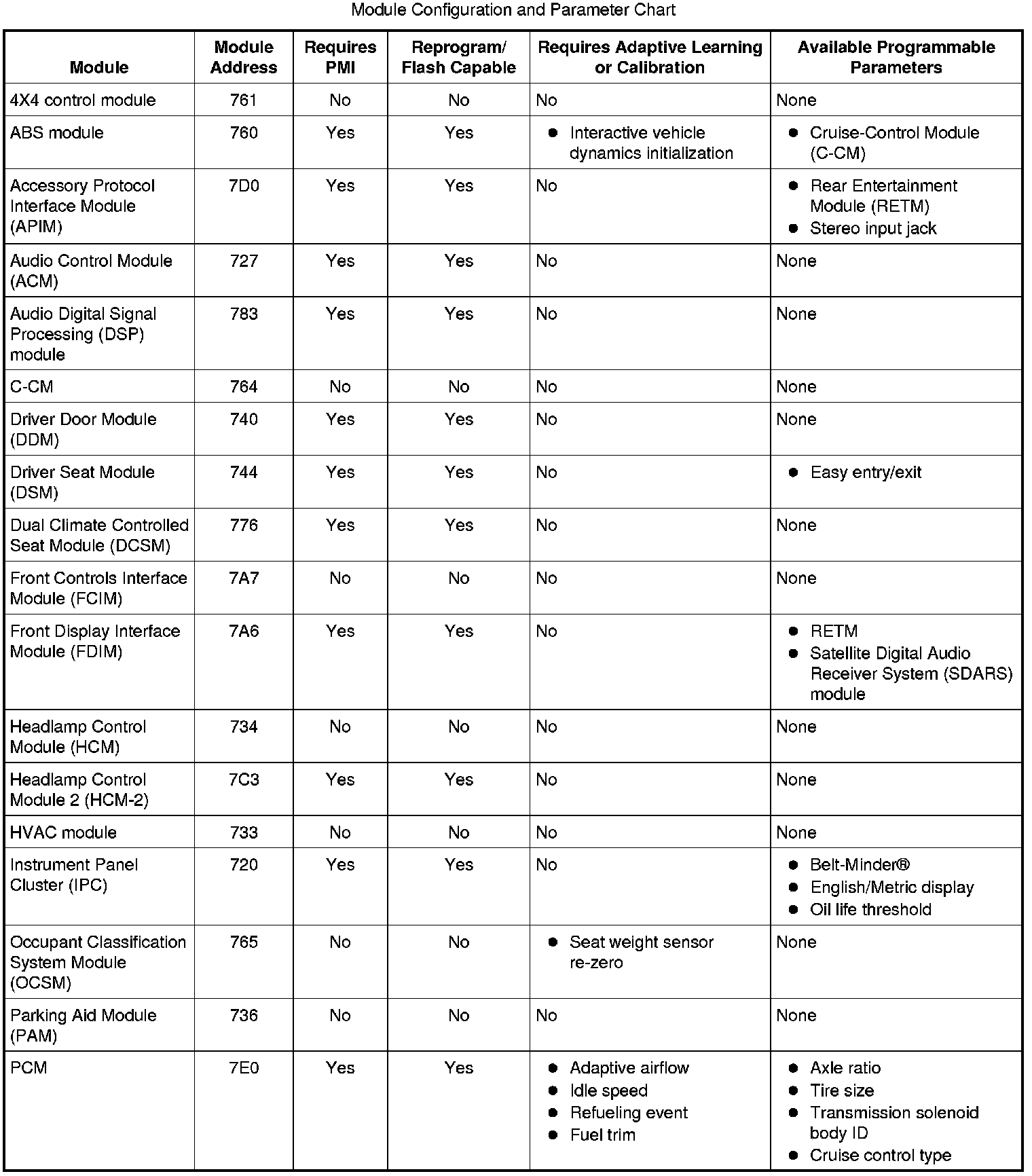 Programmable parameters are customer preference items that may be modified by the dealer via scan tool or in some cases modified by the customer following a procedure listed in the vehicle Owner's Literature. While many configuration options may exist for a module, only a few of these options are programmable parameters.