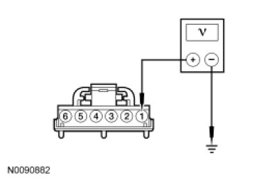 - Measure the voltage between RH front window control switch C604-1, circuit CPW14 (VT/WH), harness side and ground.