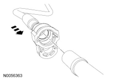 NOTICE: When reusing liquid or vapor tube connectors, make sure to use compressed air to remove any foreign material from the connector retaining clip area before separating from the tube or damage to the tube or connector retaining clip can occur. Apply clean engine oil to the end of the tube before inserting the tube into the connector.