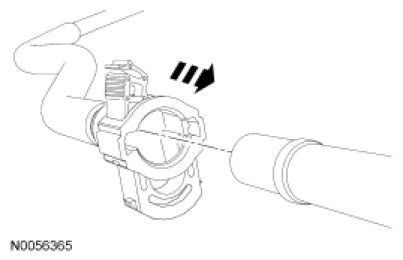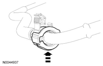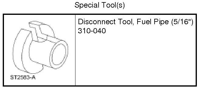 3. Install the Fuel Pipe Disconnect Tool on the tube and push into the quick connect coupling locking clip to release.
