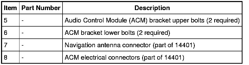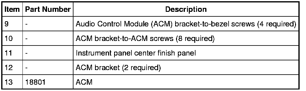 NOTE: It is not necessary to remove the ACM to retrieve the part number. For additional information, refer to Audio Unit Part Number Retrieval Audio Unit Part Number Retrieval.