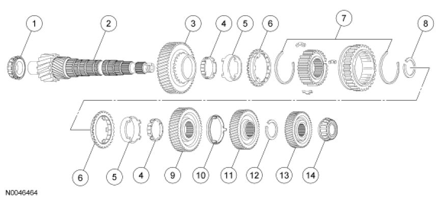 7. NOTE: The synchronizer blocking rings are not interchangeable. Make sure to keep them in the order that they were removed.