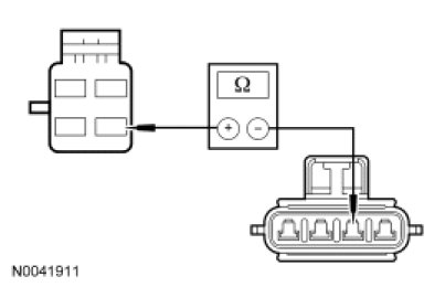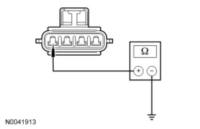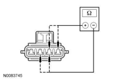 - Measure the resistance between blower motor resistor C293-D, circuit GD115 (BK/GY), harness side and ground.