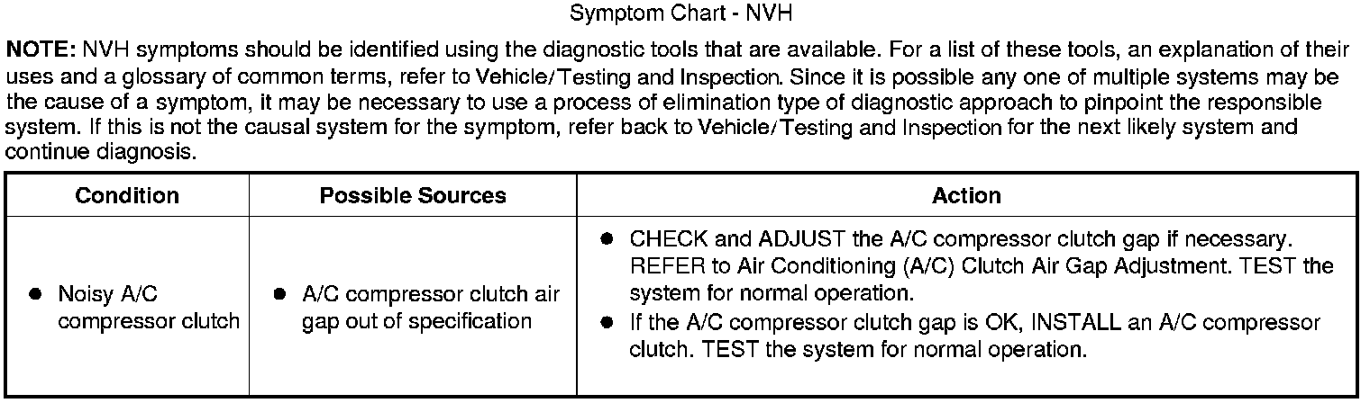 Symptom Chart - NVH: