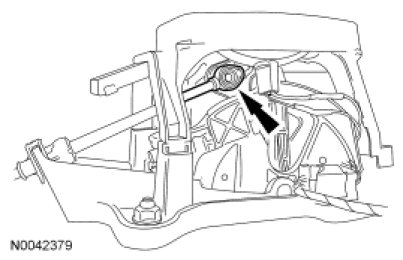 3. NOTE: When installing the selector lever cable, make sure that the selector lever cable locking tabs are locked in place and the selector lever cable end is snapped onto the ball stud. Press the selector lever cable into the bracket and listen for the selector lever cable to click in place. Pull back on the selector lever cable to make sure that it is locked into the selector lever cable bracket. Also make sure that the selector lever cable end is correctly installed onto the ball stud. Pull back on the selector lever cable end to make sure that the selector lever cable end is correctly installed.