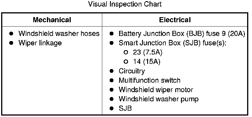8. Clear the continuous DTCs and carry out the self-test diagnostics for the SJB and the Wiper Control Test.